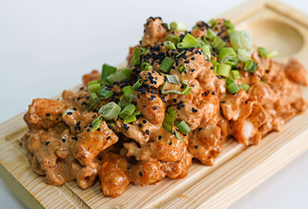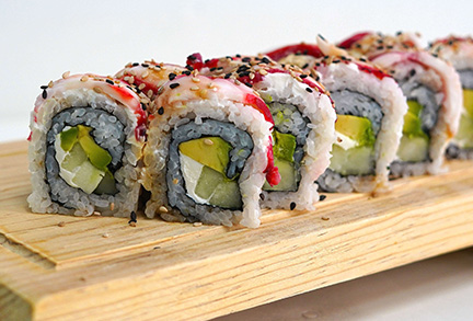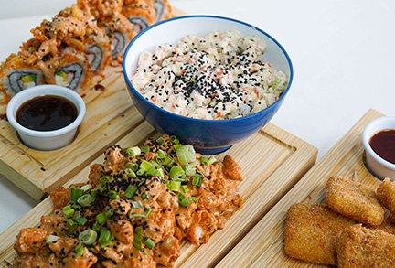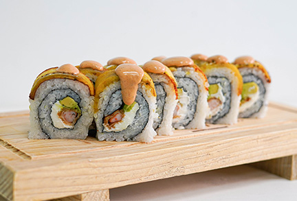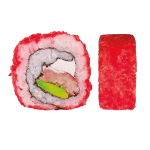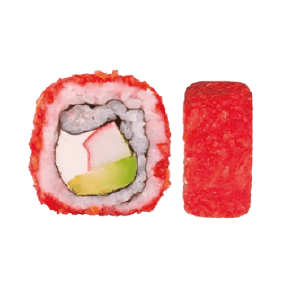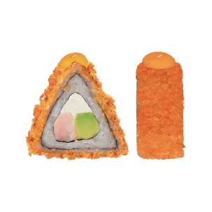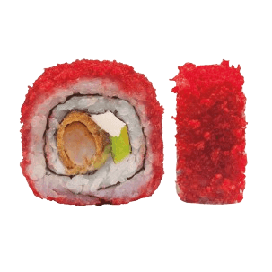 Por dentro: camarón empanizado, aguacate y queso crema. Por fuera: cubierto de cheetos flamin hot. (280 gr)